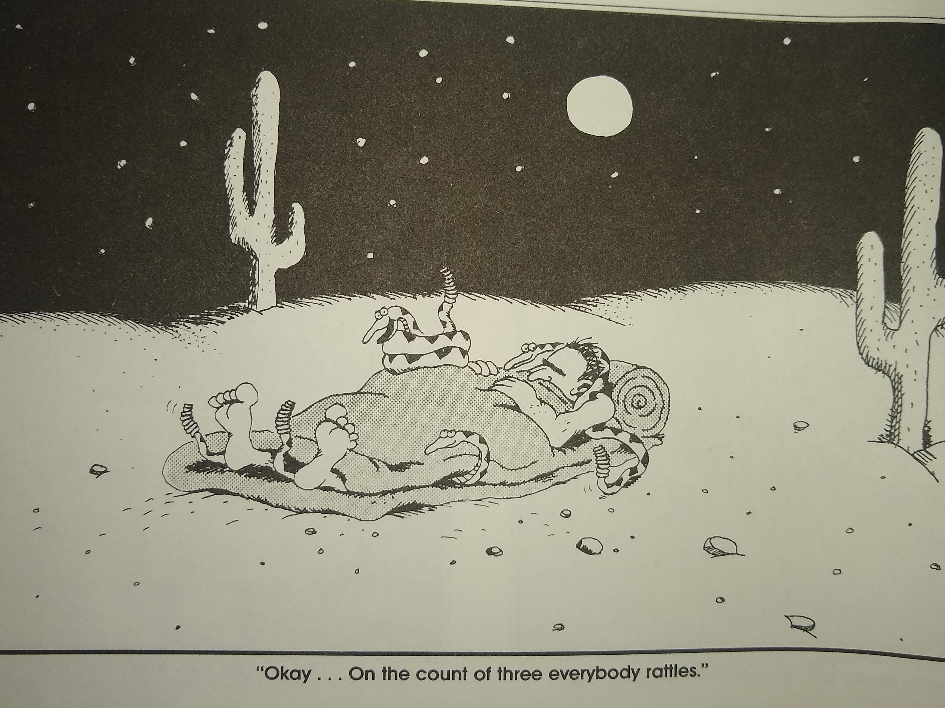The art is everything the prose should be: funny and silly and full of unexpected twists with a narrative that you think is going one direction before cleverly flipping back on itself. It reminded me strongly of The Far Side comics by Gary Larson I used to read growing up, which have a deep impact on my current sense of humor. Absurdity is funny! But you do have to lean into it wholeheartedly. You can’t do half absurd/half serious. The end result is just… meh.