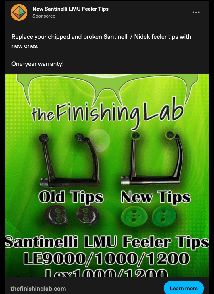 This particular ad sparked this post. At the time, I had no idea if feeler tips were a real thing or not. The ad hits like a bunch of random words flung together, photoshopped with pictures of buttons and broken doorknobs. I’ve since learned that feeler tips are an actual tool for working with lenses for glasses. Looks like I can add “working optometrist” to my personal dataset.