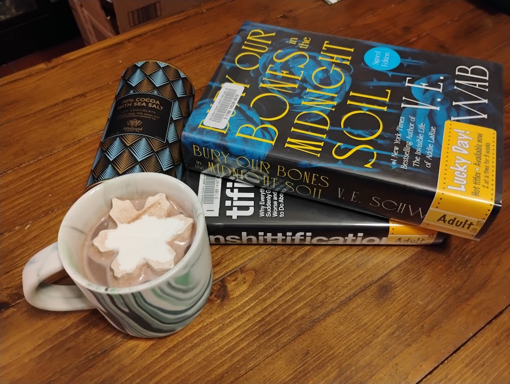 What I’m reading now: Bury Our Bones in the Midnight Soil by V.E. Schwab. I went into this book cold, with only a glancing read through the jacket copy and passing knowledge of the author (I loved Vicious and Vengeful, found The Invisible Life of Addie LaRue to be well written but ultimately not for me). *Mild spoilers* ahead so jump to the next section if you don’t want to know this but I had no idea this was a vampire novel. It seems obvious in hindsight with the jacket copy hinting at “hunger” and “girls growing teeth” but true to the style of the writing, that could have easily been a metaphor. The book jumps between the present-day POV of a young girl at college and the POV of a young woman several centuries past who escapes her peasant life by marrying a rich man who doesn’t really care about her. The style of writing is beautiful to read but I haven’t quite been pulled in by the plot yet. There’s plenty of pretty prose and dramatic imagery and themes but part of me can’t help but wonder if it’s actually leading somewhere. I’ll definitely keep reading though.